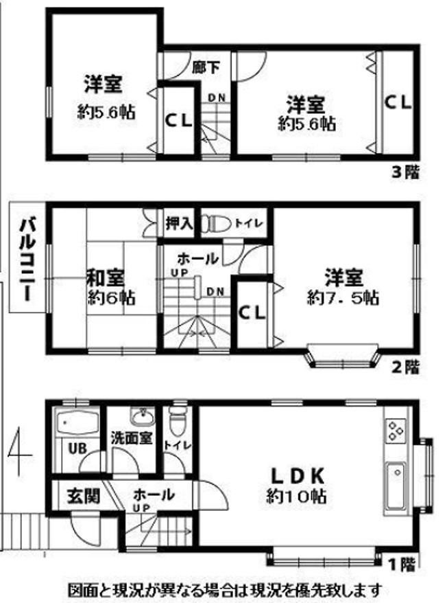 | 専有面積または建物面積 | 公簿116.74㎡(1階31.46㎡、2階33.12㎡ 三階27.32㎡、地下24.84㎡) | 土地面積 | 公簿57.04㎡(17.25坪) |